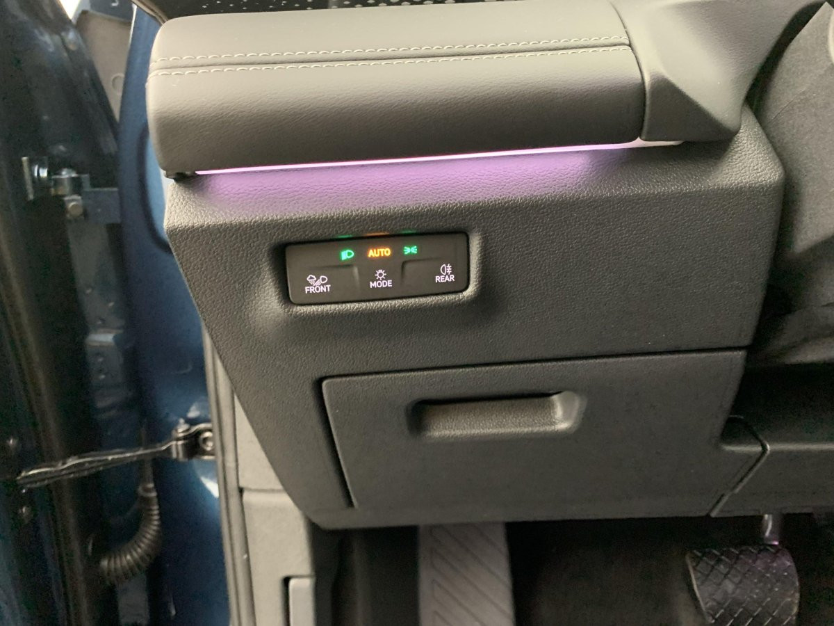 Avertissement de sortie de véhicule lorsque le conducteur veut sortir du véhicule mais qu'un cycliste ou véhicule s'approche par derrière, le conducteur est averti (le témoin d'aide au changement de voie s'allume sur le rétroviseur, un signal sonore est émis et l'éclairage de la porte passe au rouge)